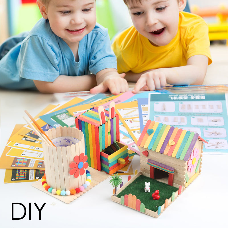 Pack of 50 Assorted Color Wooden Stick. Size: 150*18*1.6mm. Multicoloured Wood Craft Sticks is a set of intensely coloured popsicle shaped sticks which is ideal for making frames, boxes, note holders & all kinds of home decorations. They are also great for school projects that include everything from puppets & characters, to miniature scenes with fences and model houses towns.