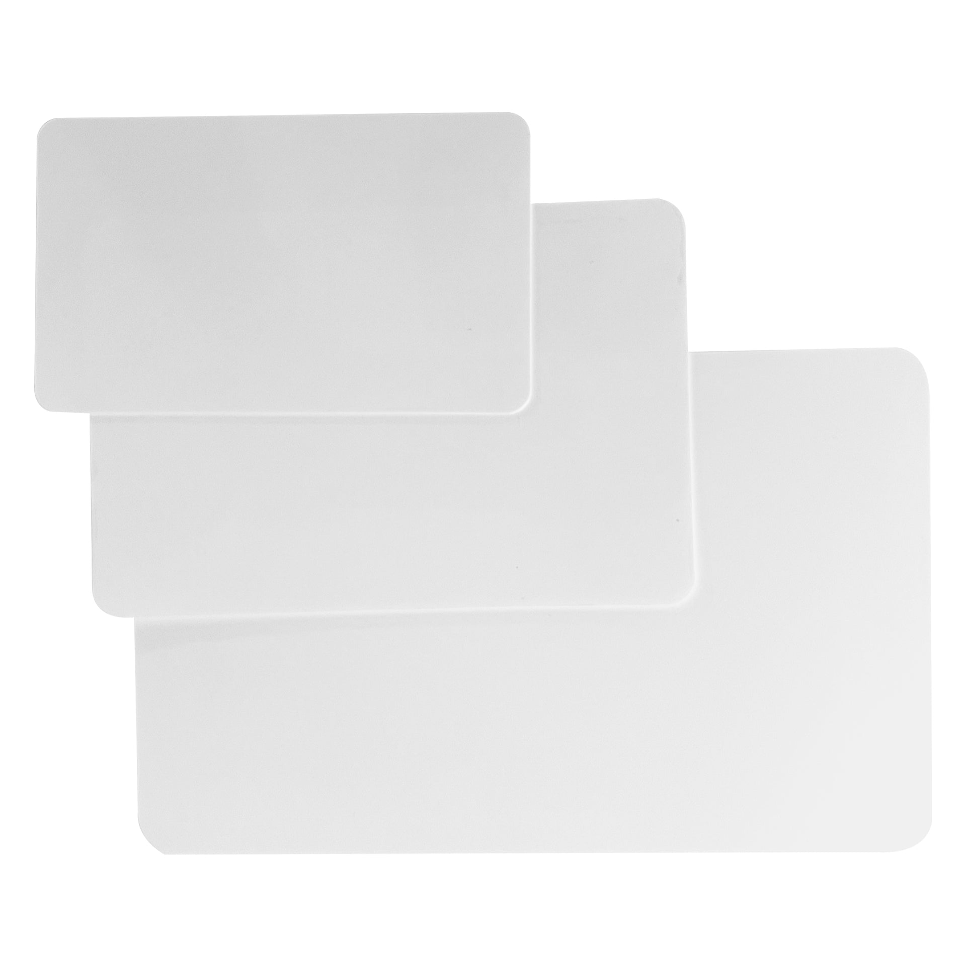 Pack of 12 5x3" Dry Wipe Whiteboards. Pack of 12 5x3" Drywipe Whiteboards, designed for convenient and versatile use in classrooms, home learning, and offices. Measuring 126x76mm, these boards are perfectly sized for presentations, revision notes, quick exercises or classroom activities. Made from durable and flexible polypropylene (PP), they feature a smooth double-sided plain white surface, ideal for writing and erasing with ease. The 0.75mm thickness (750 microns) ensures durability while remaining lightweight and easy to handle. Rounded corners add a touch of safety, making them suitable for all ages. Reusable and easy to clean, these dry erase boards are an eco-friendly alternative to paper. Compact and practical, they are perfect for interactive learning, brainstorming sessions, or everyday organisation.
