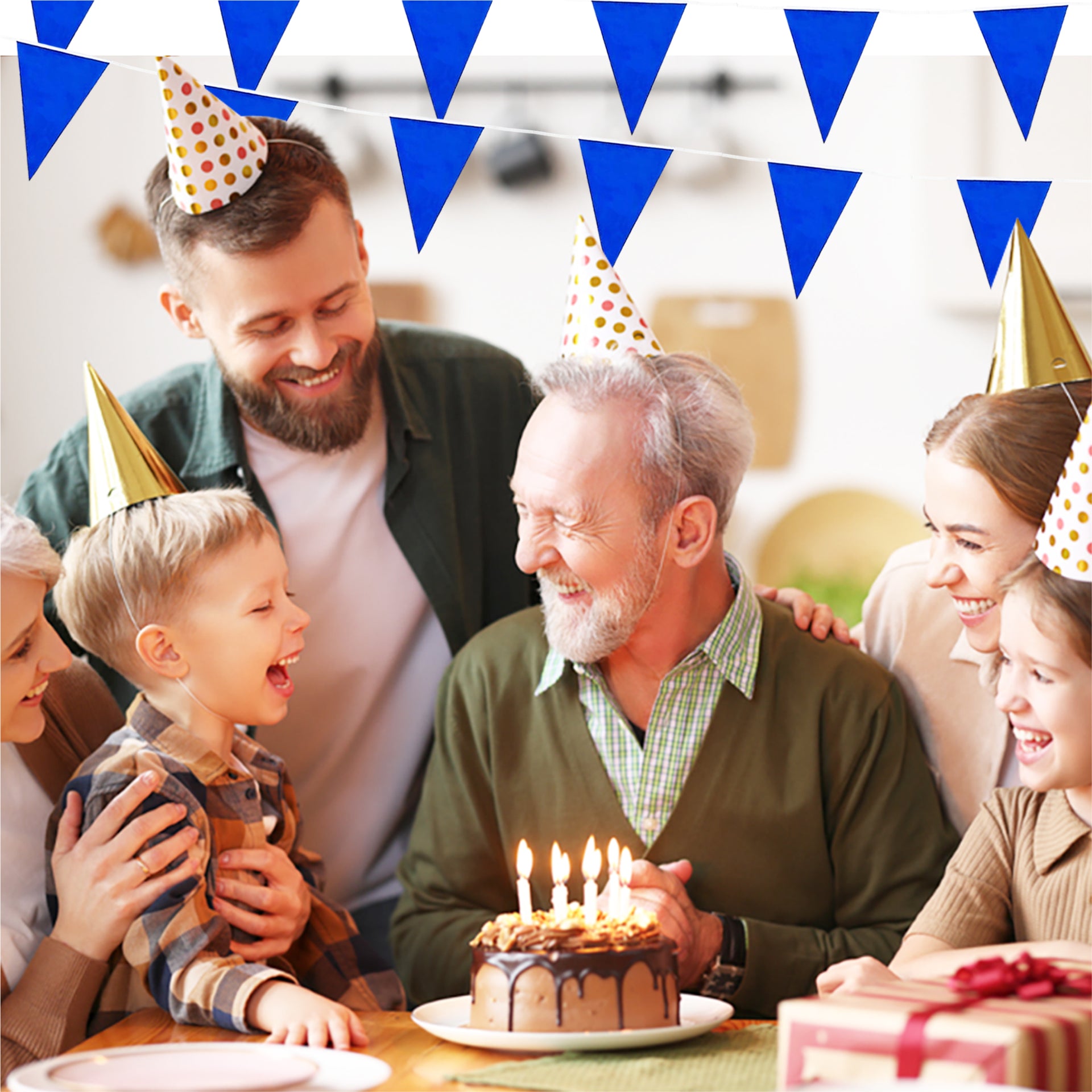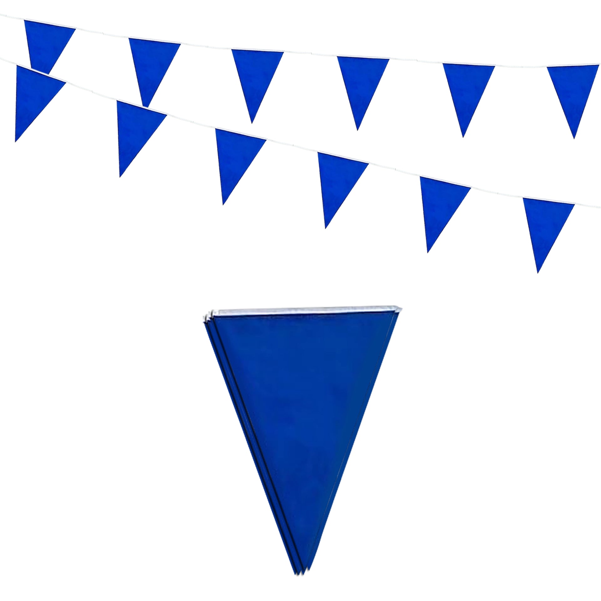 Blue Bunting 10m with 20 Pennants. This bunting measures 10m and has 20 pennants. Material: PVC. Approx size of each Flag/ Pennant 30x20cm.