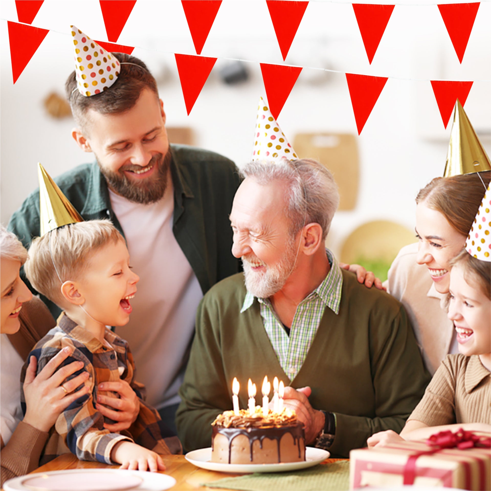 Red Bunting 10m with 20 Pennants. This bunting measures 10m and has 20 pennants. Material: PVC. Approx size of each Flag/ Pennant 30x20cm.