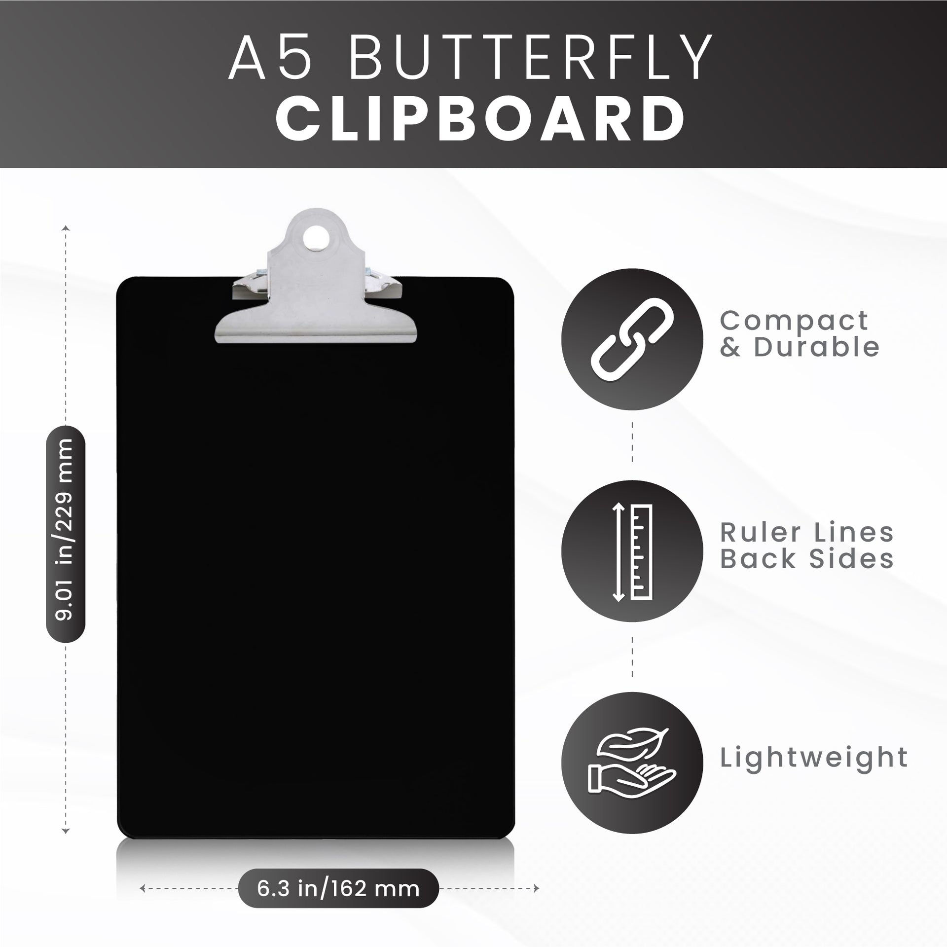 - Black A5 Clipboard with Butterfly Clip with Ruled Side