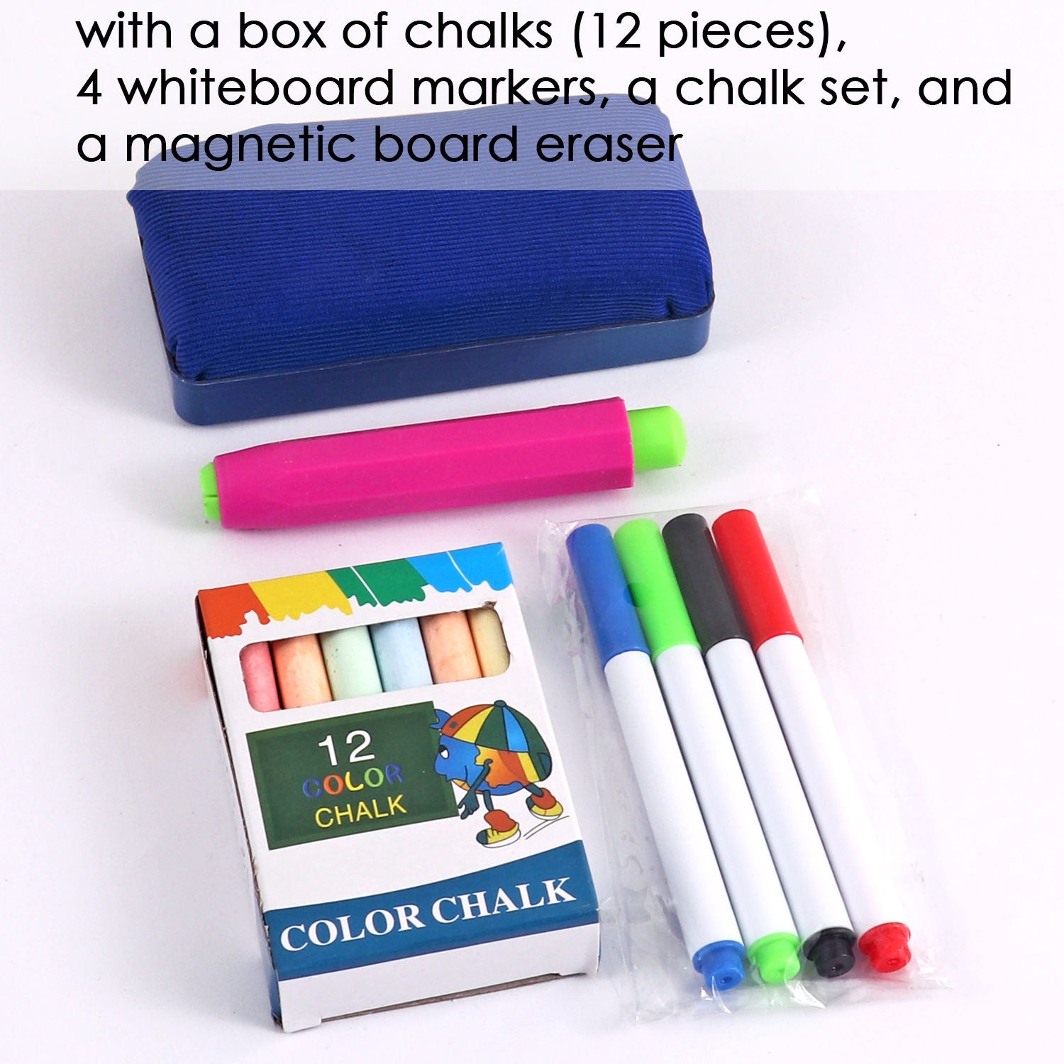 Height Adjustable and Foldable Wood Easel Kids Drawing Board 57 x 80cm . Panel size: 57x8x80cm, Height: 78-136cm, with a box of chalks(12pieces), 4 whiteboard markers, a chalk set and a magnetic eraser. Inspire creativity in young artists with our Height Adjustable and Foldable Wood Easel Kids Drawing Board. Perfectly sized with a drawing panel of 57x8x80cm, and an adjustable height ranging from 78-136cm, this easel grows with your child, providing a comfortable and ergonomic platform for their artistic endeavors at any age. Crafted from durable, child-friendly materials, the easel can easily be folded for convenient storage or transport, making it an ideal choice for both home and classroom settings. The set comes complete with a box of 12 colorful chalk pieces, 4 whiteboard markers, a comprehensive chalk set, and a magnetic eraser, ensuring your little one has all they need to explore their creativity. Whether it's drawing, painting, or scribbling, the dual-sided design offers endless possibilities, with one side perfect for chalk art and the other a wipe-clean whiteboard for markers. This versatile and interactive easel not only encourages artistic expression but also aids in the development of fine motor skills and hand-eye coordination, making it a valuable addition to your child's learning tools.