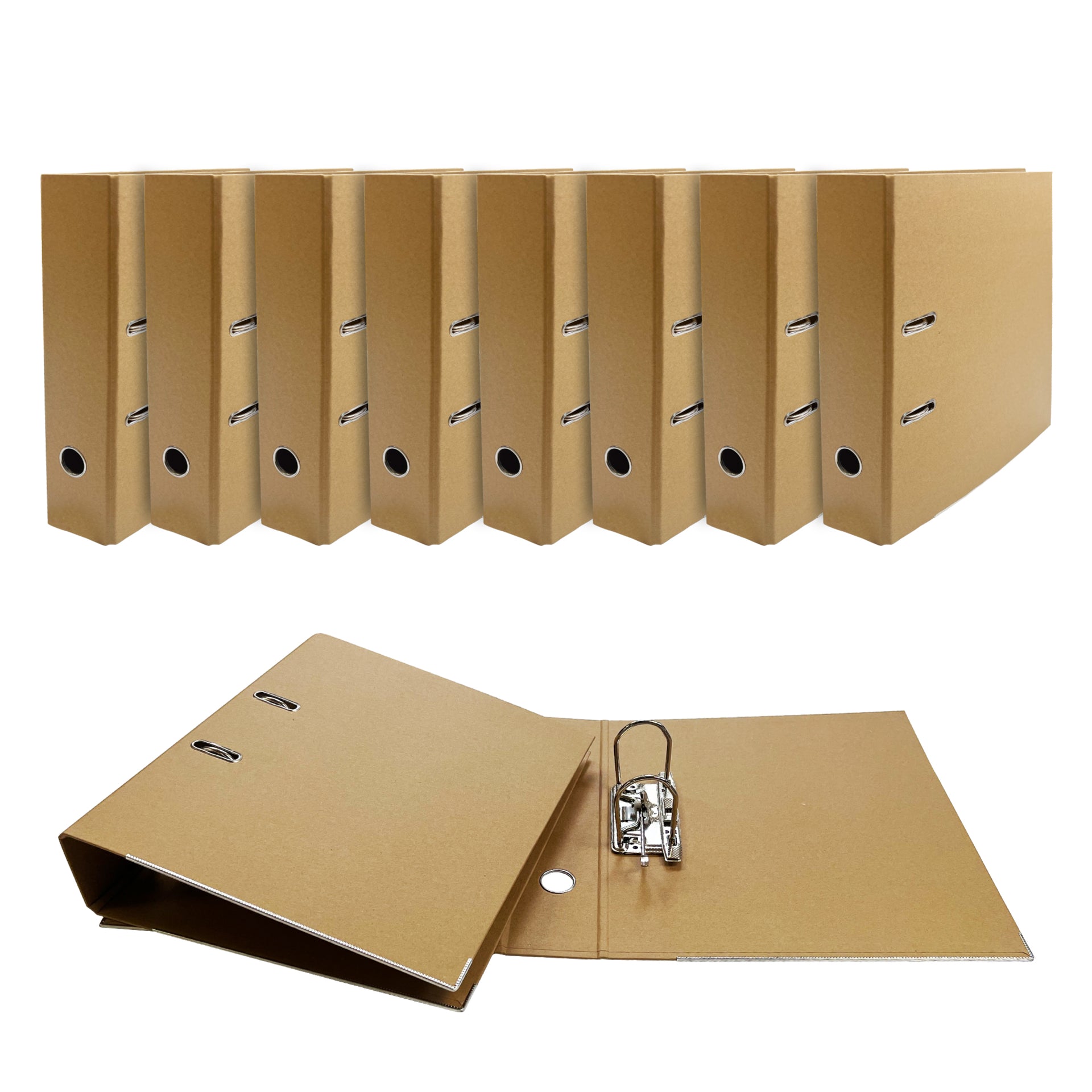 A4 Kraft Paperboard Lever Arch File. A robust and eco-friendly solution for your document storage needs. Covered in natural kraft paper both inside and out, this file combines sustainability with a rustic, stylish look. The 3" spine provides ample space for storing large volumes of A4 papers, making it perfect for organising reports, manuals, and important documents. Equipped with edge protectors, it ensures durability and protection against wear and tear. The lever arch mechanism, along with rado slots and a finger ring, offers easy handling and secure storage, allowing for smooth page turning and quick access to your files. Ideal for both office and home use, this kraft paperboard lever arch file is a practical and elegant addition to any workspace.