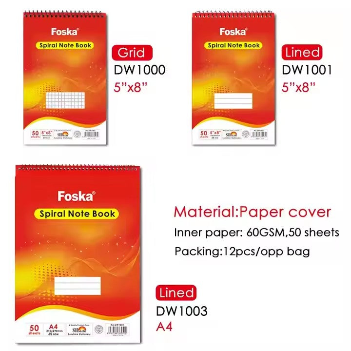 50 Sheets Lined Spiral Notebook 5"x8"