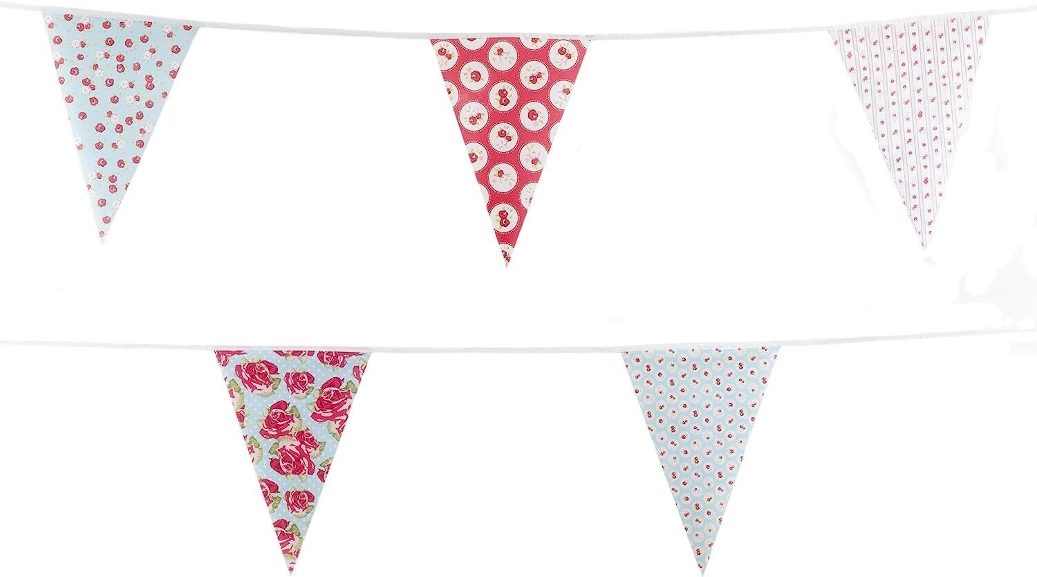 C1008 Red and Baby Blue Shabby Chic Vintage Print Bunting 10m with 20 Pennants
