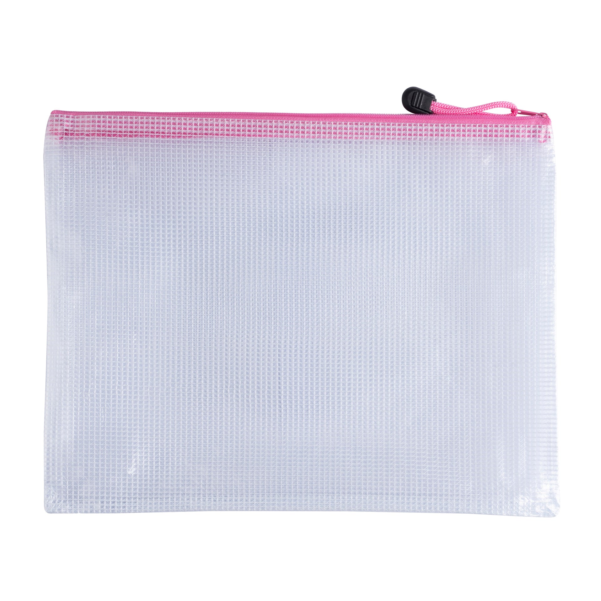 - Pack of 12 A5 Pink PVC Mesh Zip Bags