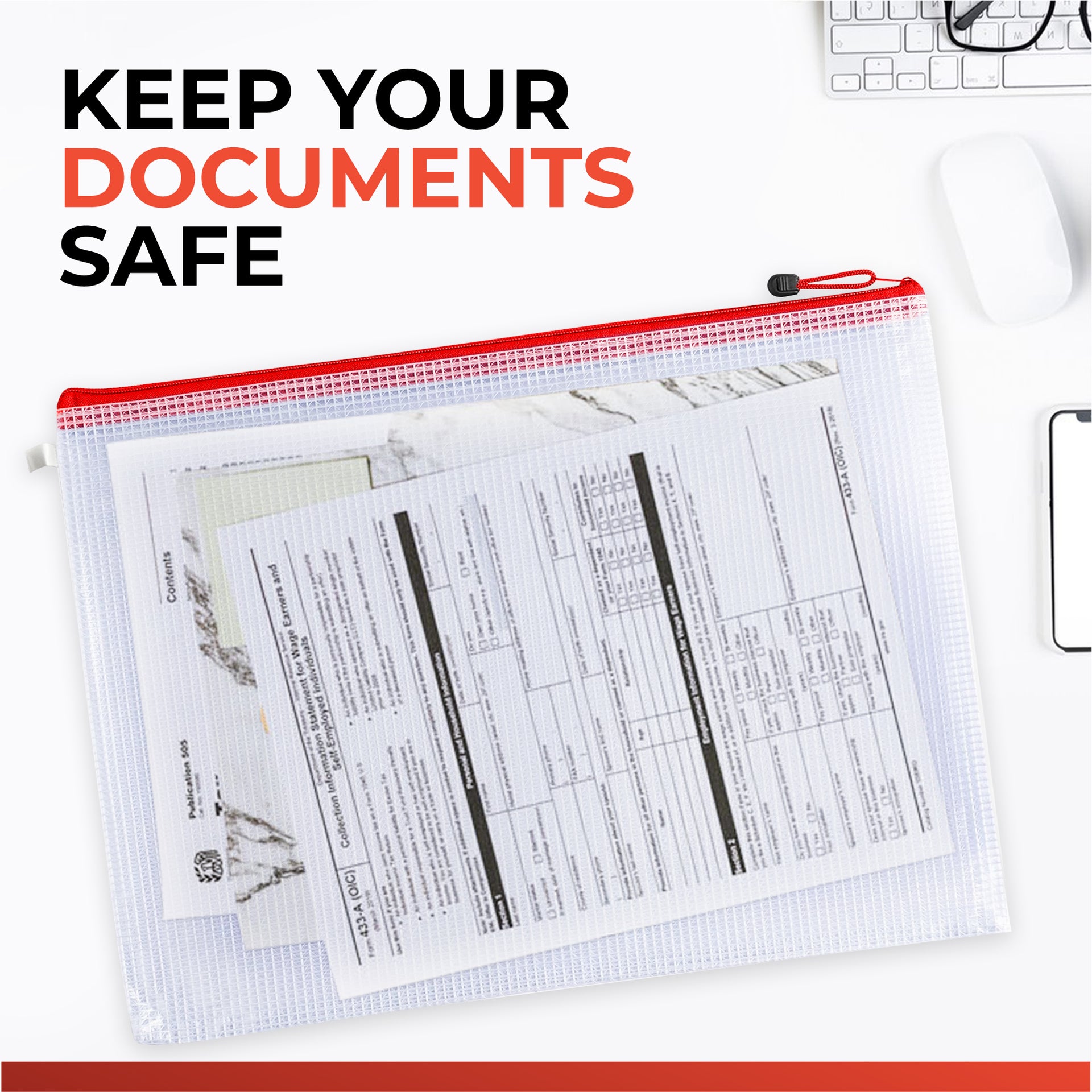 - Pack of 12 A5 Red Zip Strong Mesh Bags - Tough Waterproof Storage
