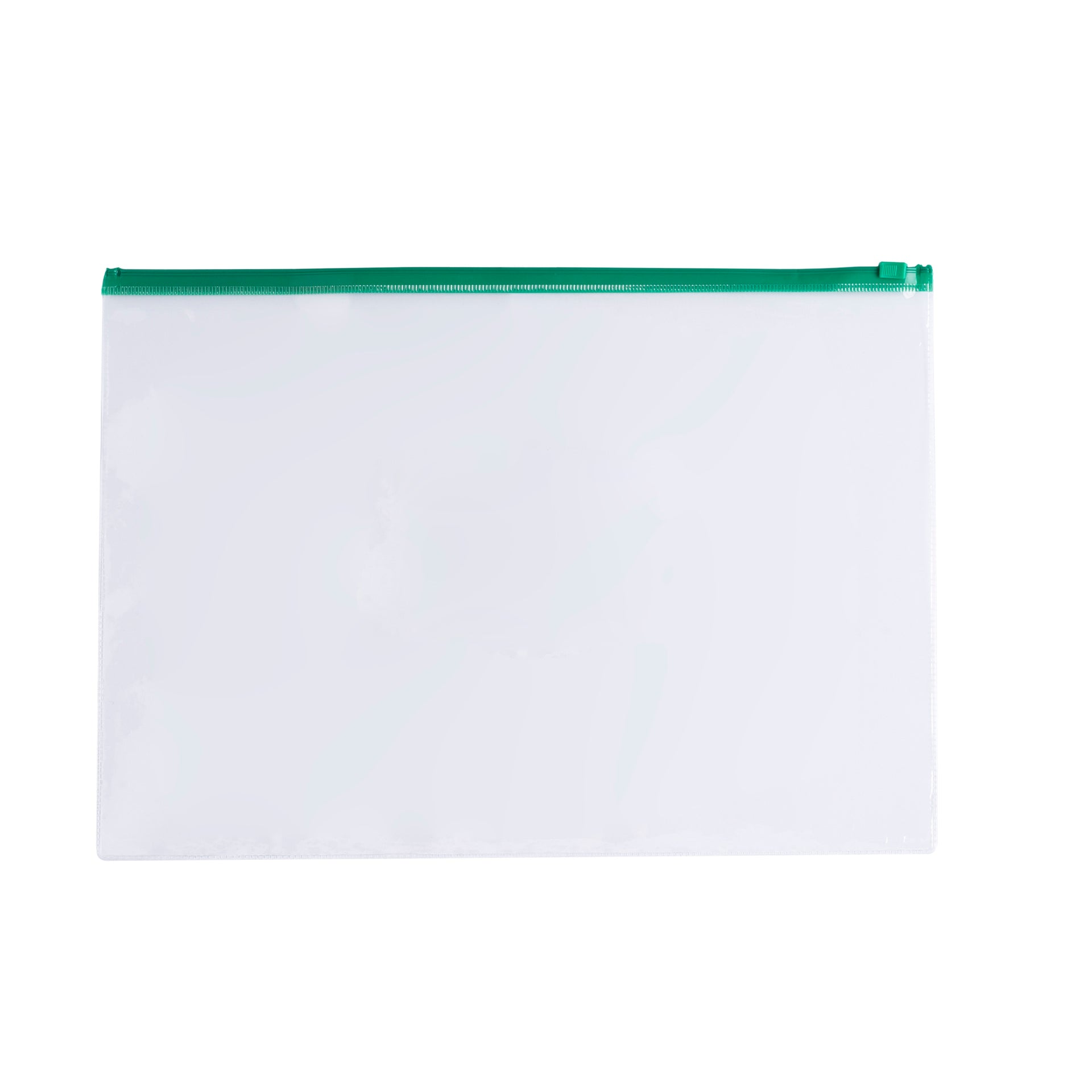 - Pack of 12 A6 Clear Zippy Bags with Green Zip
