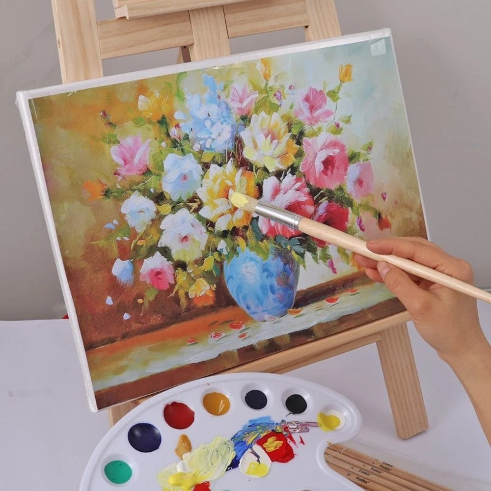 - Pack of 12 Assorted Size Wooden Round Handle Bristle Hair Artist Paint Brush Set