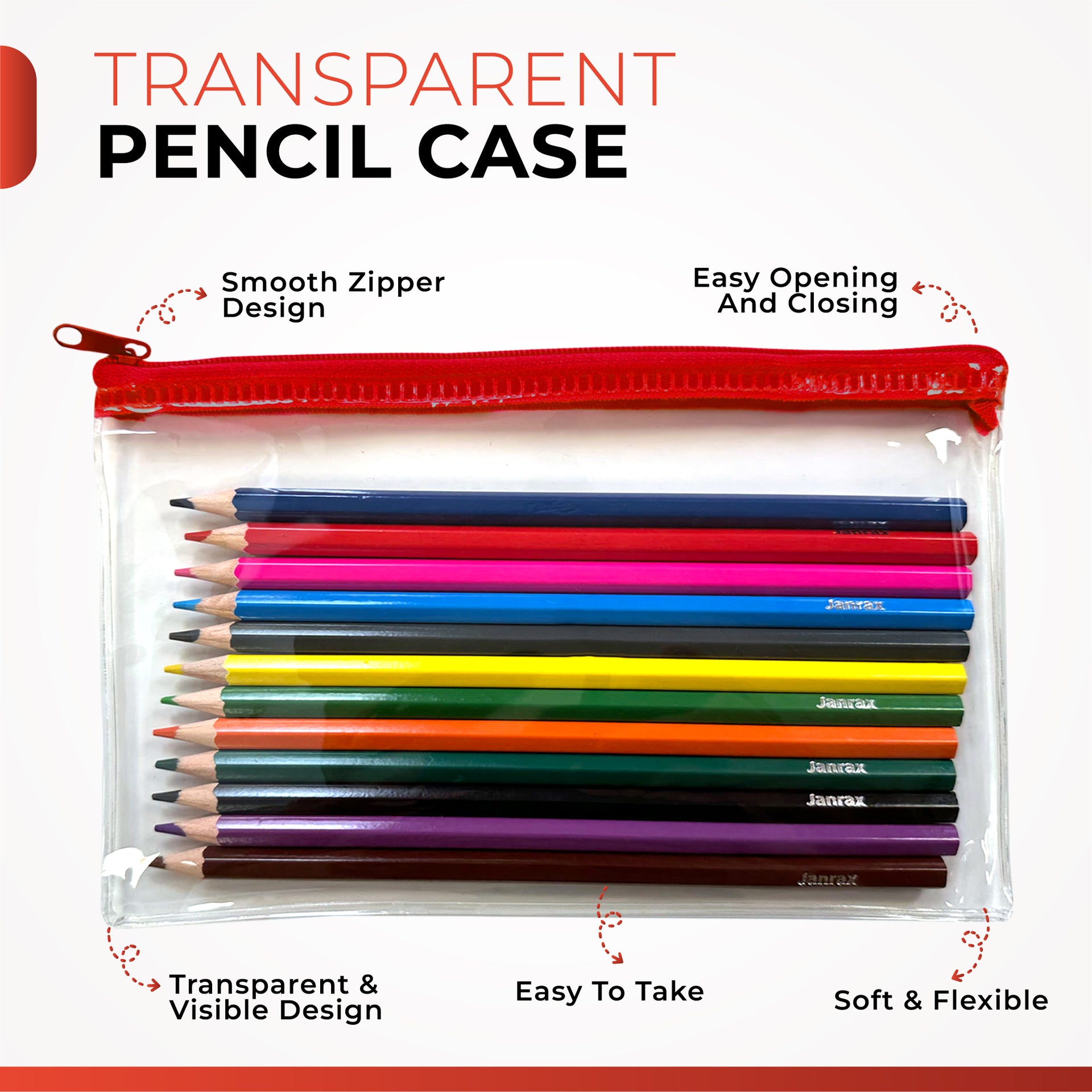 Pack of 12 Colouring Pencils in Black Zip Clear Pencil Case
