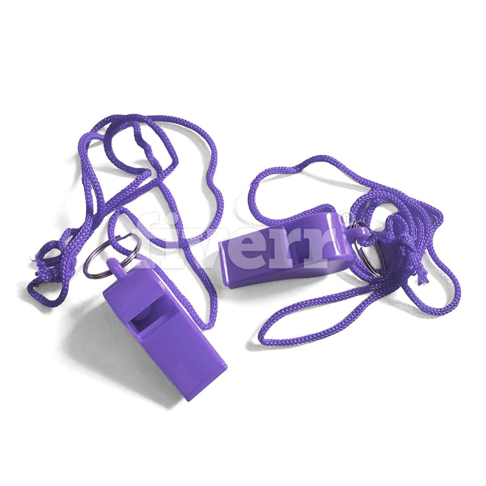 - Pack of 15 Purple Plastic Whistles with Lanyard Neck Cord