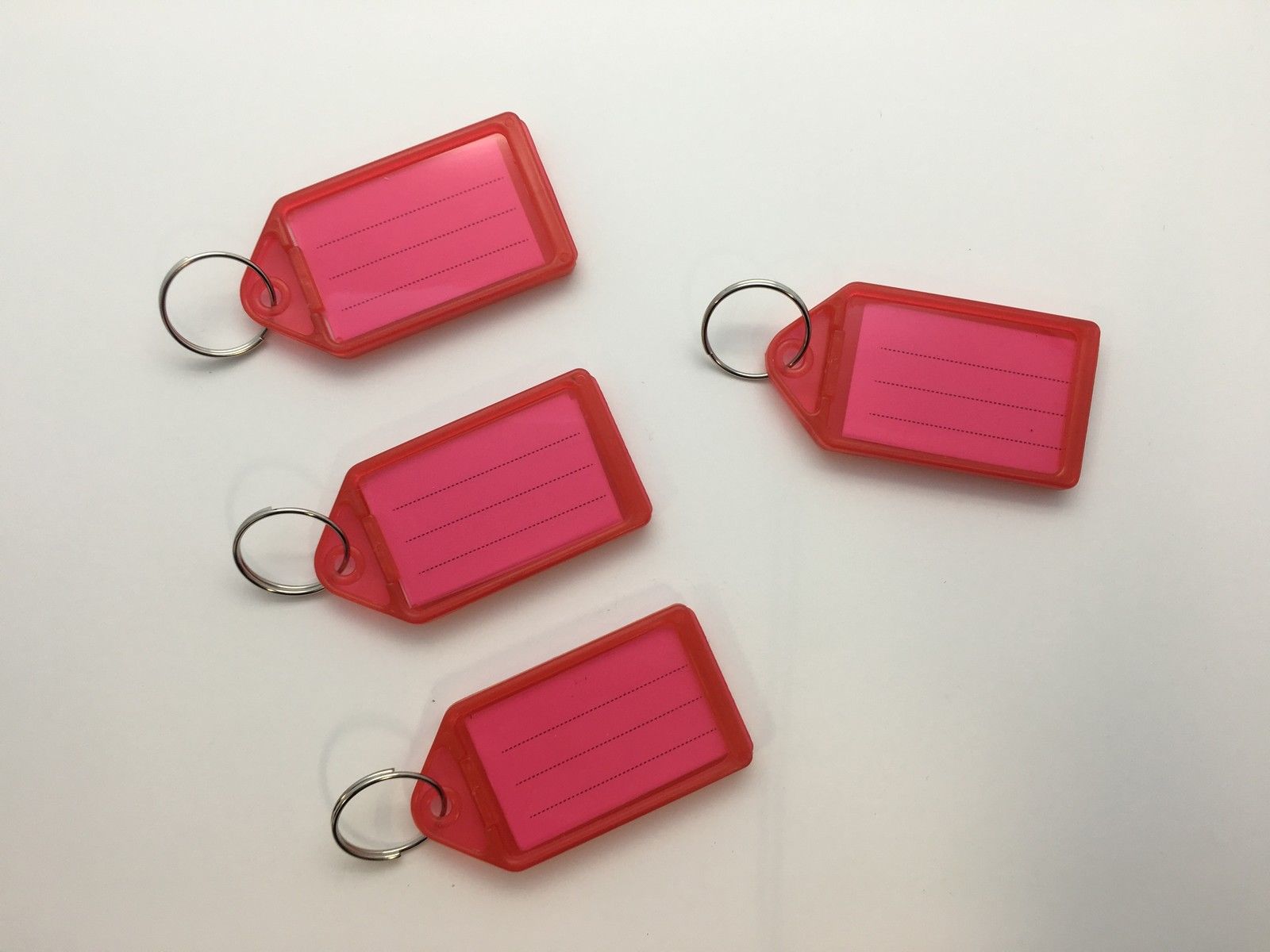 - Pack of 50 Large Red Identity Tag Key Rings - Sliding Fob Keyrings Coloured